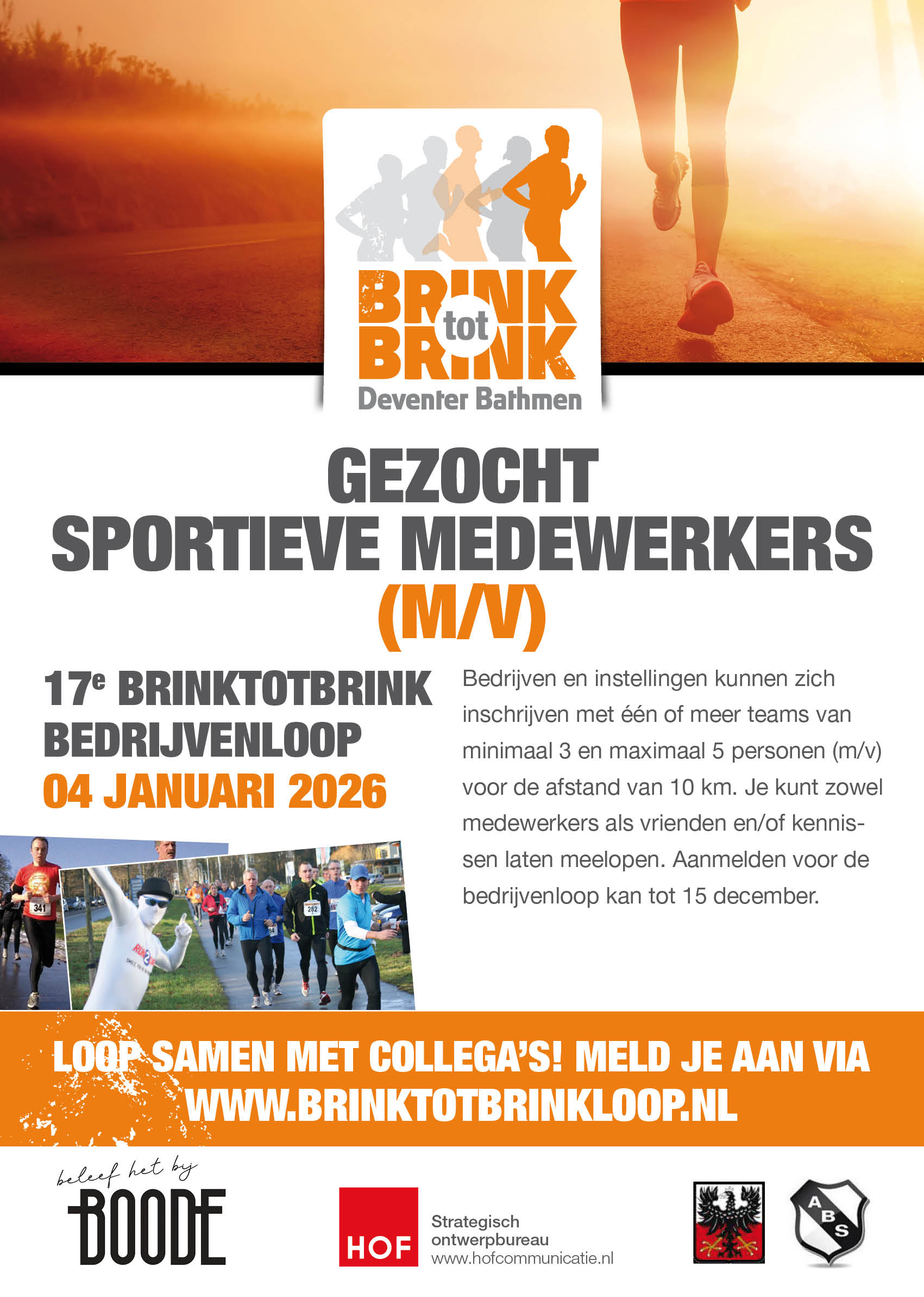 De Brink tot Brinkloop kun je natuurlijk individueel lopen, maar nog leuker is het om te lopen met een team van je bedrijf of organisatie.