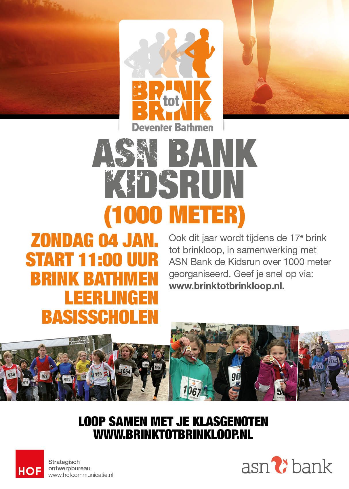 De Kidsrun wordt gesponsord tijdens de 17 brink tot brinkloop door ASN-bank Bathmen.