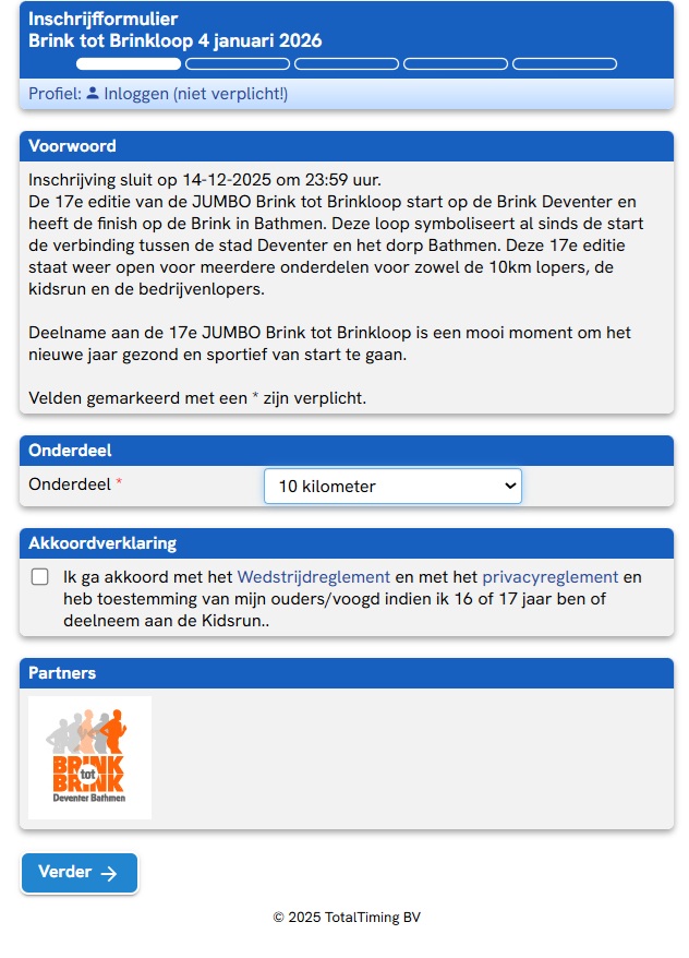 Inschrijfkosten Brink tot Brinkloop |