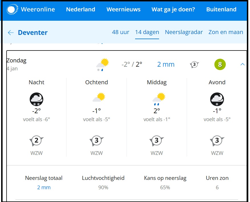WEERSVERWACHTING ZONDAG 4-1-2026